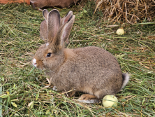 4 junge Kaninchen, geboren am 17.Mai 2023, suchen ihr neues Zuhause. Die Geschlechter verteilen sich auf 2 Weibchen und 2 kastrierte Männchen. Die Kaninchen werden nicht an reine Käfighaltung und nur paarweise abgegeben, außer es ist nachweislich ein zweites Tier vorhanden. Sie bekommen einen kleinen Beutel ihres gewohnten Futters mit und sind gegen Kokzidien behandelt. Die Kaninchen entstanden aus der Verpaarung gelber Riese (Vater) und schwarzer Wiener (Mutter) und bekommen ausgewachsen ein Gewicht von 4,5 bis 7 kg, je nach Geschlecht und welche der beiden Rassen mehr zur Ausprägung kommt.